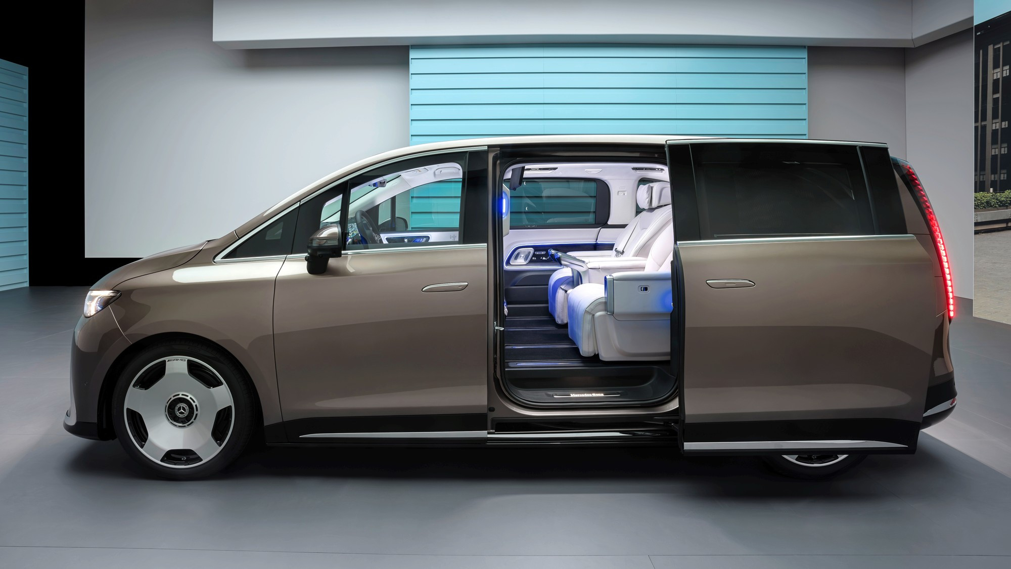 Платформа VAN.EA имеет 800-вольтовую электрическую архитектуру. На старте продаж летом этого года электрический минивэн будет доступен в двух версиях — VLE 300 electric и VLE 400 4Matic electric (любопытно, то громоздкая приставка with EQ technology, указывающая на электрическую силовую установку, больше не используется), обе оснащены литий-никель-марганец-кобальтовой батареей ёмкостью 115 кВт·ч, но позже появится более доступная версия с литий-железо-фосфатной батареей ёмкостью 80 кВт·ч. Весит электрический VLE порядка трёх тонн, из них почти 700 кг приходятся на батарею.